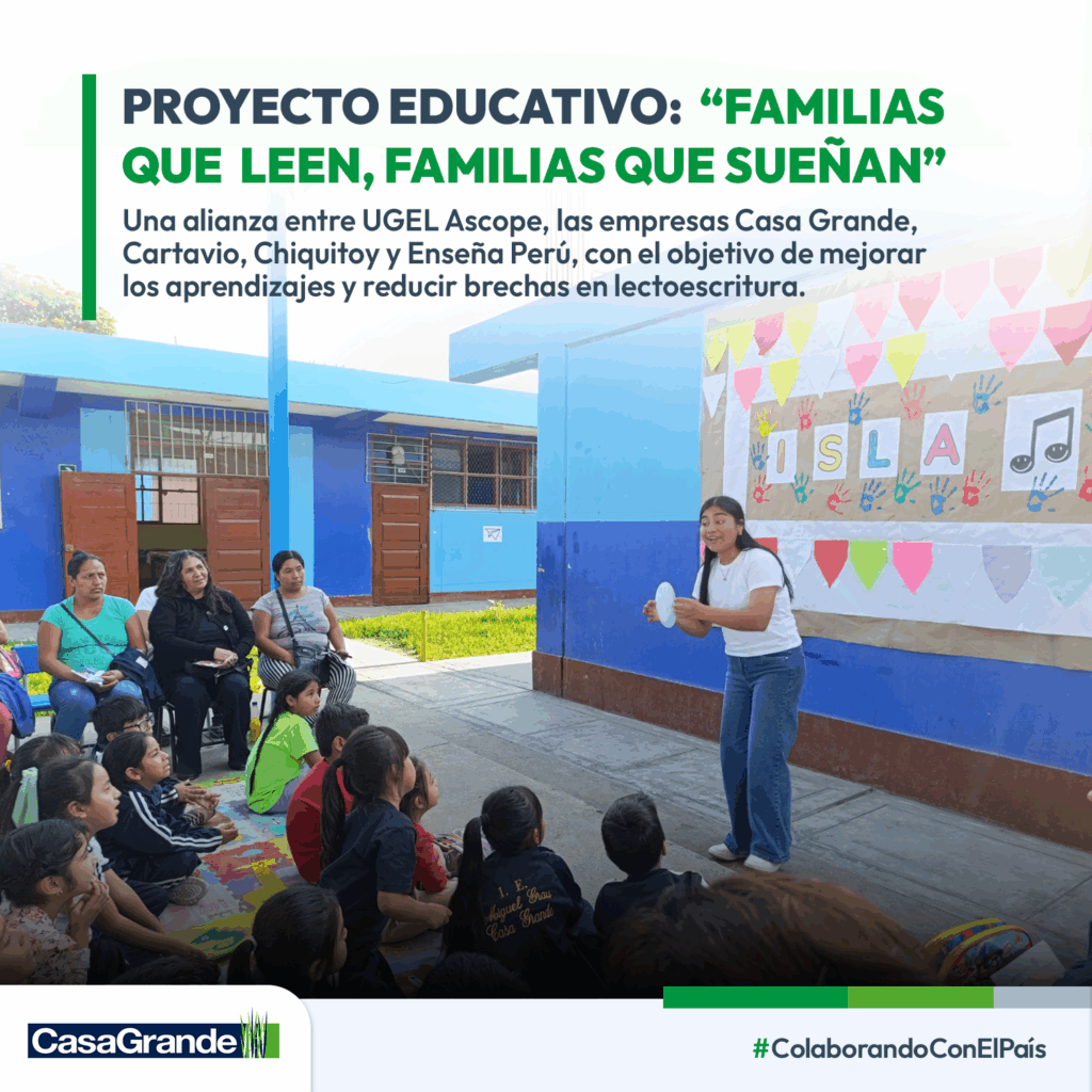 CasaGrande en alianza con la UGEL Ascope y Enseña Perú, continúa fomentando programas con el objetivo de mejorar los aprendizajes y reducir brechas en lectoescritura, por medio de actividades lúdicas entre estudiantes y sus familias.